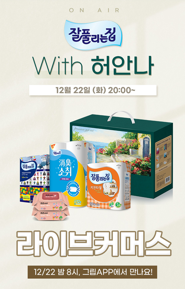 풀리는집 화장지를 제조하는 미래생활㈜(대표 변재락)이 22일 오후 8시부터 라이브커머스 플랫폼 ‘그립’에서 ‘잘풀리는집 연말감사 기획전’을 진행한다.